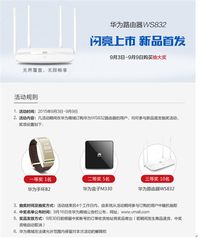 2015年9月3日上午10:08分,全球通讯巨头华为旗下千兆路由全新力作华为WS832登陆Vmall、华为天猫旗舰店以及4家天猫授权店面,正式开售。相对于去年推出的千兆路由旗舰WS880,该款路由在延续了高配置、丰富功能的同时,还增加了诸多拓展功能,也进一步将价格压到了249元,可谓是非常亲民。 不仅如此,需要注意的是,凡在活动期间即9月3日-9月9日,于华为商城订购华为路由WS8