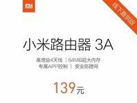 4月6日上午,小米悄然发布了一款专供线下市场的小米路由器3A,售价为139元,不过小米官方并未公布这款路由器的详细配置,而通过宣传海报上的简单介绍,这款路由器采用了高增益4天线,内存为64MB,同样支持APP控制以及防蹭网功能。从目前官方公布的图片来看,小米路由器3A的外观和小米路由器3保持了一致,没有任何区别。 作为对比来看,目前小米官网的小米路由器3配备的是128MB内存