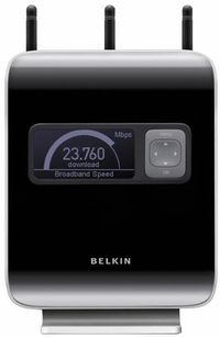 最近D-Link也发布了一款带液晶屏的无线路由器——DGL 4500,这是一款专门为热衷于网络游戏的朋友设计的一款11n的产品。 这是一款基于802.11n 2.0草案标准的产品,路由上提供了块液晶显示屏,用户可以方便也查看网络的使用状况。在它的背部有一个USB接口可以共享网络打印机或移动硬盘。它还配备了独特的“玩家引擎”技术,可以提高网络游戏连接质量。 还记得贝尔金的N1