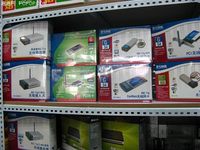 没有竞争就没有市场,多个厂家都推出自己的USB无线网卡,这个产品好处是没有局限性,笔记本和台式机都可以用。然后面对刚上市时300-400元高高在上的价格,有价无市的市场,厂商们纷纷调价,而且还是相当同步。Linksys的实用型和NETGEAR的小巧型无线网卡,如今市面价格都降到了190元。 这款NETGEAR的WG111是整个54M无线网卡市场中销售较多的产品,可能是因为小巧,让人们