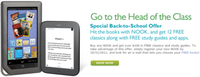 泡泡网电子书阅读器频道8月11日 Barnes & Noble已经开始了开学促销活动,从即日起至9月12日,购买Nook设备并在10月31日前完成注册,即可获赠价值100美元的电子书和学习指南。促销涉及全系列Nook设备,包括最新版的Nook(Nook 2)电子书阅读器,Nook Color阅读器/平板,以及第一代Nook电子书。 赠送的100美元的电子书有《双城记》、《罪与