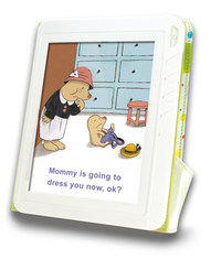 泡泡网电子书频道11月25日 天瀚科技与和英、格林文化与鸣岚智识等出版业者策略联盟,共同发表全球首部彩色电子童书。Story Book inColor以天瀚科技AIPTEK品牌营销,以平民化的价格,即日起,在全台湾门巿上巿销售。 全球首部先给孩子的彩色电子书 按键细节设计简洁可爱 inColor存建20本优质的童书,产品设计以幼童为出发点做考虑,外型设计简洁,附有可爱的保护书