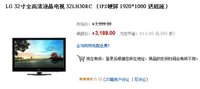 32吋液晶电视卖2000多块不是什么新鲜事,毕竟可选择多,分辨率也不高,才720p!不过1080p的32吋液晶电视可是“珍兽”,本来机种就少,要找到一款品牌不错,价格不错的,更是不易。 而LG 32LH30RC刚好符合上述条件,自然也引起了不少消费者的兴趣。从3999元到3599元,再到3299元、3188元,短短几个月的时间,这款产品的价格就一直不断调降,而伴随的是几家大型的3