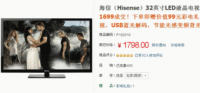 马晶 · 2012-06-11 00:01 - 销量冠军!海信32吋最低价LED仅1699元