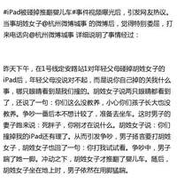 日前,一则“iPad被碰掉 女子推翻对方婴儿推车”的视频在微博上疯传,据悉王某(男,36岁)与妻子黄某(女,25岁)在杭州地铁一号线定安路站因与乘客胡某(女,24岁)发生身体碰触,导致胡某手上的iPad掉落,继而发生口角。从视频可以看到,双方很快从口角变成肢体冲突,地铁工作人员一直在劝架,并提前将婴儿车推到一旁。争执中,王某右脚踢踹到胡某腹部,胡某捂着肚子退靠在柱子上。 在大家劝阻王某时,她