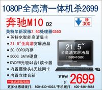 泡泡网一体电脑频道9月11日 对于家用电脑来讲,由于用户有着较多的观影、游戏等娱乐需求,因此在配置均衡的基础上,有出色的画面呈现能力,绝对能够加分不少,在这方面,神舟奔驰一体机M10 D2表现出色。奔驰M10 D2官方标配21.5英寸全高清宽屏液晶显示器,其分辨率为1920*1080,能够给用户带去清晰细腻、色彩鲜亮的画面,让用户尽享家庭影院般的视觉享受!此外,它以一体机的简洁设计摆脱了台