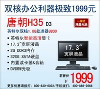 泡泡网一体电脑频道9月16日 记得当初在一体机刚面市时,有很多人就扬言一体机将取代台式电脑。时至今日,台式电脑依旧没有被AIO所取代,而是以一种并存的形式共同发展着,这恰恰说明了每个类型的产品都有其各自的优势和特点。就拿神舟电脑最新推出的这款有着性能和性价比双优一体机——唐朝H35 D3来说,它采用17.3英寸宽屏液晶显示器与主机合二为一的设计,轻薄简约!配置上,目前热销的唐朝H35 D3