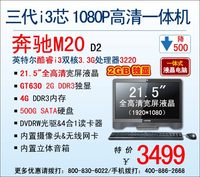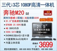 泡泡网一体电脑频道9月18日 只有高性能的笔记本电脑才适合大学生?事实并非如此!今天小编就给大家推荐一款相当适合学生购买的全能型一体电脑——奔驰M20。它在整个神舟一体机系列当中,属于硬件配置和性价比最为突出的一款。如今最新升级的奔驰M20 D2来袭,性能再度提升,处理器已经升级至第三代英特尔酷睿i3双核3220,其主频高达3.3GHz,与之前的D1版本相比单CPU性能就提升了15%%。再配