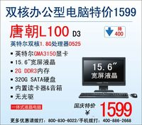 泡泡网一体电脑频道9月29日 从经济实用的角度考虑,一台配置均衡、价格实惠的电脑才是企业办公用户的最佳选择。神舟电脑唐朝L100D D3正是这样一台适合企业办公用户的高性价比电脑。它搭载英特尔双核处理器D525,内置英特尔GMA3150显卡,系统运行和图形处理能力都非常不错,再加上2G DDR3内存、320G SATA硬盘等主流硬件配置,唐朝L100D D3能够轻松胜任办公者下达的工作任务