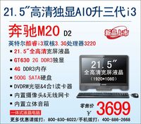 泡泡网一体电脑频道7月30日 在整个神舟一体机系列当中,一直以奔驰M20的硬件配置最为突出,当然性价比也相当突出。如今最新升级的奔驰M20 D2来袭,性能再度提升,处理器已经升级至第三代英特尔酷睿i3双核3220,其主频高达3.3GHz,与之前的D1版本相比单CPU性能就提升了15%%。再配合主流的4G DDR3内存,令其系统运行畅快稳定!此外它还标配了500G SATA硬盘、DVDRW刻录