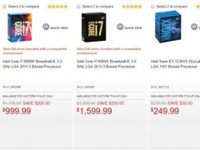 AMD的Ryzen系列已正式公布了,其强大的性能和极低的定价彻底打乱了英特尔在本代CPU市场上的布局,其中Ryzen旗舰1800X拥有略胜i7-6900K的性能,但价格仅有后者的一半。这也让大家有预感英特尔不得不调整自己产品的售价来回击。果然事情的发展和预料一样! 现在i7-6950X的降价幅度达到了300美元,折合人民币2059元。 当然,不仅仅是6950X,在AMD的价格战