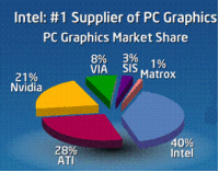 还是那个老问题,还是那个不变的答案,谁占据了最大的图形显示芯片的市场份额?不是nVIDIA,也不是ATI,而是Intel,通过其整合的显示芯片牢牢占据着40%%的市场份额。在这里我们姑且不去谈论从今年年初就在业界掀起的关于Intel要进军独立显卡市场的声音,真实的也罢,谣言也罢,对我们们最终消费者这始终是件好事情,中原逐鹿,靠的是厂商的实力,受益的是更快更精彩的行业发展,受益的是消费者更多的