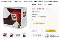 泡泡网CPU频道2月13日 ● 产品型号:FX-4100 (报价 参数 图片 评论 ) ● 产品现价:799元 ● 购买链接:网邻商城 ● 编辑点评:最近推土机旗下又一款新兵到货市场——AMD FX-4100作为AMD推土机家族里最小的成员,拥有3.6GHz的主频,4MB二级缓存,8MB三级缓存,性能不错,在网邻商城的报价799元,推荐喜欢尝鲜的朋友选购。 AMD