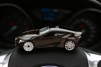 泡泡网GPS频道6月14日 类似雷克萨斯LFA超级跑车的造型仿真感做的真的非常足够,外形比例完全贴合真车,漆面非常的光滑、透亮,车身采用锌合金材质,质地非常的出色,整个产品接缝处特别细密,不说这是一款安全预警仪,其实我们当它是一款仿真模型,不用的时候放在附送的水晶盒里面,摆在家里显眼的地方做展示,也是非常合适的。 善领云狗GT338SC采用了类似褐色的颜色涂装,这个颜色其实隐