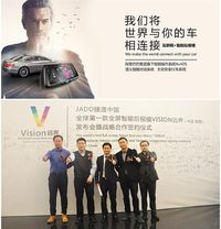 2015年12月30日下午,西安合正汽车用品有限公司携手JADO捷渡中国,在大秦温泉酒店举行全球第一款全屏智能后视镜“Vision远界”发布会暨合作签约仪式(中国·陕西)。到场嘉宾有:JADO捷渡中国董事长王杰;JADO捷渡中国(上海)营销中心总经理陈问文;JADO捷渡中国产品总监吴乐明;阿里巴巴OS事业群互联网汽车总监候剑;阿里巴巴汽车产品部经理许磊;西安合正汽车用品有限公司总经理刘焕博;平安保