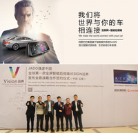 2015年12月9日下午,昆明港龙汽车用品有限公司携手JADO捷渡中国,在昆明高原明珠大酒店举行—JADO捷渡中国全球第一款全屏智能后视镜“Vision远界”发布会暨合作签约仪式(中国·云南)。 到嘉宾有(从左至右),JADO捷渡中国(上海)营销中心副总经理:刘赟;JADO捷渡中国产品总监:吴乐明;JADO捷渡中国董事长:王杰;阿里巴巴OS事业群互联网汽车产品经理:谭雄;昆明港龙汽