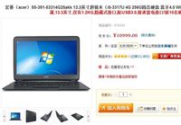 泡泡网超极本频道7月25日 蜂鸟S5是Acer推出的第二代超极本,搭载英特尔最新Ivy Bridge处理器,全新的架构让笔记性能更强、续航时间也更长。其中,S5-391-53314G25akk是S5家族中配置较高的一款,配备全新i5处理器和256GB固态硬盘,规格较高。目前这款机器在京东商城的最新售价为10999元,前10名晒单送500元京券。【购机链接】 购买页面截图