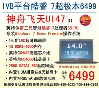 泡泡网超极本频道7月18日 神舟电脑新一代IVB超极本飞天UI47,整体外观采用合金制造,拥有14英寸LED超薄瑰丽屏,整机厚度最大19mm,仅重1.7kg。配置上它特别采用了英特尔超低电压第三代酷睿i7处理器3517U,4G DDR3-1333内存,高速HM76芯片组!预装Win7操作系统的飞天UI47,拥有256G SATA3 SSD固态硬盘,暑期爽爆5999元! 神舟新
