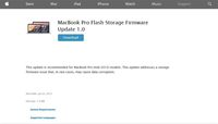 苹果于今年5月中旬正式发布了搭载Force Touch触摸板和PCI-E固态硬盘的2015款Macbook Pro。 不过新机型很快被发现存在一个软件隐患,该问题在极端状况下会导致数据损坏为用户带来不可逆的损失。 对此,苹果今天通过App Store和官方技术支持页面发布了针对2015年款Macbook Pro的新版SSD固件——Flash Storage Firmware U