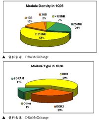 根据DRAMeXchange最新研究数据,2006年第一季全球DRAM 模块实际销售额为49.2亿美元。扣除DRAM原厂直接提供PC OEM厂商的模块出货,其中经由模块厂商出货至零售市场及PC OEM厂商之销售额为25.5亿美元。而模块厂商25.5亿美元销售额中,自有品牌业务占模块厂商营收比重高达73%% 。 DRAMeXchange更进一步指出,从整体DRAM模块产业出货型态观察,