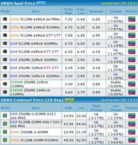 根据来自DRAMExchange分析报道,目前DRAM内存市场中的DDR2内存芯片颗粒低库存率导致颗粒价格不断上涨,达到九个月以来的最高水平,在过去一周时间内,DDR2 533MHz和DDR2 667MHz 512Mb内存颗粒价格分别上涨10%%,达到5.92美元和5.97美元。 根据调查报告显示,目前的DRAM芯片颗粒库存量仅仅只能够维持约1.92周时间,DRAM的紧缺程度达到200
