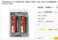 泡泡网内存频道2月14日 ● 产品型号:8GB DDR3 1600(GSKILL F3-12800CL9D-8GBXL) (报价 参数 图片 评论 ) ● 产品现价:299元 ● 购买链接:网邻商城 ● 编辑点评:芝奇内存近来推出了一系列高性价比产品,其中芝奇4GB DDR3-1600内存套装,更是作为超大容量产品,受到了很多超频玩家关注,目前在网邻商城的售价仅为299元。