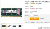 泡泡网内存频道2月13日 ● 产品型号:4G DDR3 1333 笔记本(KVR1333D3S9/4G) (报价 参数 图片 评论 ) ● 产品现价:129元 ● 购买链接:易讯网(北京站) ● 编辑点评:金士顿4GB DDR3 1333笔记本内存系出名门,为日本尔必达原厂代工,做工十分精湛,稳定性和兼容性俱佳,更具有低功耗、发热小的特点,单根内存就能提供4GB容量,非常适合笔记