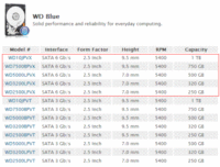 泡泡网硬盘频道4月18日 桌面版/企业级3.5寸HDD早已升级到的SATA 6Gbps接口,不过2.5寸硬盘产品线中有相当多的产品还停留在SATA 3Gbps接口时代。日前Hardware.fr发现西数旗下的2.5寸蓝盘悄悄升级到了SATA 6Gbps接口,性能也略微提升。 SATA 6Gbps接口的2.5寸蓝屏有9.5mm和7.0mm两个厚度标准,前者主要有WD10JP