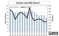 SSD干掉HDD硬盘已经不是可能不可能的问题,只是时间长短的问题。尽管在桌面市场上,SSD在容量、价格上双双超过HDD硬盘还有点困难,但在笔记本 市场上,SSD越来越受欢迎,今年Q2季度MLC、TLC闪存合约报价分别下降了6-10%%、4-11%%,128GB容量的SSD价格很快就要低于 500GB HDD硬盘,推动笔记本电脑SSD搭载率进一步提升,今年有望冲击40%%大关。 集邦科技旗下