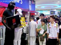 9月10日-11日,全球最小的移动微硬盘正式登录北京、广州、上海、成都等中国一线主流城市,鹏元电子为庆祝城市骆驼系列移动硬盘产品火热上市,别出心裁的进行了“黑白无间”雕像人行为艺术活动,吸引了数以百万记的消费者前来关注欣赏。 图注:城市骆驼举办的雕像人行为艺术吸引了数以百万记消费者好奇的眼光,上图为北京最大的电脑卖场海龙电脑城入口处。 图注:城市骆驼推出的三款最新存储产