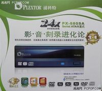 2009年可谓是刻录速度的巅峰年,各个厂商纷纷在加紧力度开发更高速度的新产品。作为业界首屈一指的专业刻录机生产厂商,浦科特自然没有停止开发的脚步,率先研发出了世界最快的24X DVD刻录机——PX-880SA。作为浦科特全新的旗舰产品,PX-880SA不仅具有超高的刻录速度,而且还具备一系列特殊功能与测试功能。它的出现无疑又将刻录机推向了一个历史新高点。 PX-880SA 包装图