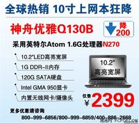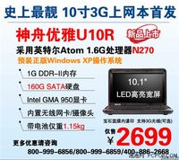 在去年9月底,神舟电脑发布了优雅Q系列上网本,最低价格仅1880元起,凭借极具震撼力的破冰价格、英特尔凌动处理器的出色性能以及轻薄时尚的造型设计,引发了市场的狂热追捧。时隔半年时间,神舟又推出了优雅U系列的上网本U10R,采用最新的膜内漾印技术,10.1寸的屏幕并支持3G无线上网,再次将“优雅”这个神舟的高端子品牌的内涵和魅力演绎得淋漓尽致。同时优雅Q130B再降100后杀至2399元,彻