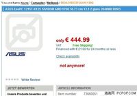 泡泡网上网本频道9月14日 据德国媒体报道,继华硕在意大利发售首款AMD上网本EeePC 1201K之后,华硕13日又推出搭载AMD超轻薄移动平台的新款EeePC 1215T,德国ComputerPool.de上给出的预定售价为444.99欧元(约3830元人民币)。 华硕 EeePC 1215T 在德国网站上的预售信息(图片来源:互联网) 据悉,华硕EeePC 1215T