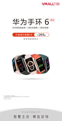 11月3日,荣耀智慧生活新品直播发布新款智能手环——荣耀手环6,该手环配备1.47英寸AMOLED臻彩全面屏,正面采用无按键设计,引领手环迈入“手环全面屏时代1.0”。
