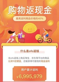 11月28日消息,ofo App首页于11月25日上线:“天天返现金”活动。据了解,用户将押金转至“天天返钱”账户,通过额外购买商品来返现,押金会以双倍返现的形式,退还到用户的手中,并且用户不能直接用押金抵扣消费。不过,经过测验,用户至少需要重新消费1500元,才能退还199元的押金。