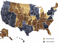 中国有句古话叫做“物以类聚,人以群分”,在游戏和政治观点的博弈中,还能继续适用于这个定律吗?外媒Reviews.org近日统计了美国50个州最喜欢的游戏。数据包含了过去5年主机和PC平台的主流游戏,而《英雄联盟》和《魔兽世界》最终脱颖而出,成为了美国人最爱的游戏。在美国50个州里面,LOL赢下了22个州,WOW赢下了28个州。LOL比例最高的前3个州是:加利福利亚、夏威夷、华盛顿;而WOW