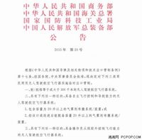7月31日下午消息,商务部与海关总署联合公告称,为维护国家安全,决定自2015年8月15日起,对部分无人驾驶航空飞行器和高性能计算机实施出口管制。 以下是公告全文: 商务部 海关总署公告2015年第31号 关于加强部分两用物项出口管制的公告 根据《中华人民共和国对外贸易法》和《中华人民共和国海关法》的相关规定,为维护国家安全,决定自2015年8月15日起,对部分无人驾驶航空飞行器和高性能