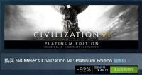 7月9日消息,在今日的Steam平台上,《文明6》白金版打出了92%%的折扣,仅需原价的8%%即可入手,现阶段价格为44.72元。