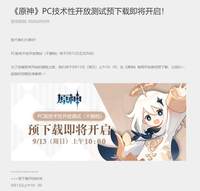据米哈游《原神》官网新闻显示,《原神》将于将于9月15日正式开启PC版技术性开放测试(不删档),而在9月13日早上10点,《原神》官网将开启《原神》PC技术性开发测试的预下载。感兴趣的朋友可以现在前往预约等待13号的开放预下载。