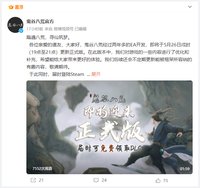 来自鬼谷八荒官方微博的消息,《鬼谷八荒》正式版将于5月26日发布,同时DLC《不归玄境》可免费领取,此优惠将持续7天。