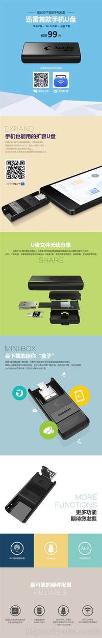 泡泡网U盘频道2月5日 卖99块钱的16GB U盘,还是USB 2.0的,你会买吗? 如果不是什么限量版产品的话,相信大多数用户都不会选择这样的产品。如果说把这款U盘加上Wi-Fi共享、Micro USB接口以及远程下载功能的话,你应该就会心动了。 这款U盘是迅雷刚刚发布的手机U盘,型号为NW1015A,容量16GB,接口为USB 2.0+Micro USB,内置了高通的933