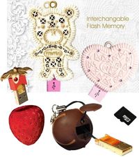 近期国外市场又推出了一系列个性化闪盘产品。如图所示,这次发售的新品都是针对女性用户量身定做而成,有草莓、巧克力以及心形和卡通图案的饼干优盘。 相对之前有售的寿司、汉堡等闪盘产品,这些造型各不相同的闪盘显得更加诱人。资料显示,这款具有2GB容量,不过从图上能够看出其实容量来自于MicroSD卡,类似的存储设备在目前看来的确少有.