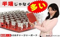 泡泡网U盘频道2月2日 一般大家使用电脑很少有将所有插槽都插满的情况,因为现在电脑有太多接口如独立显卡、键盘鼠标、网线、USB移动设备、显示器连接线接口等。但是随着数码产品多元化,很多电脑的USB接口都出现不够用的情况,近期日本著名外设厂商Thanko公司就推出了旗下一款集成了80个USB接口的充电板,但它只能充电不能当做USB接口连接传输设备。 80个USB接口