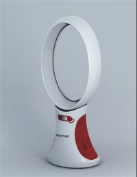 泡泡网移动硬盘频道7月16日 又到了每周的秋叶原新品时间了,今天笔者给大家带来了新玩意儿,不知道大家是否听说过无叶风扇?它是区别于大家印象中的风扇的,那就是它根本没有风扇的扇叶。 上图就是一款无叶风扇,看上去有些不可思议是不是,这样的东西怎么能做风扇?其实无叶风扇利用喷气式飞机引擎及汽车涡轮增压中的技术,通过底部的吸风孔吸入空气,圆环边缘的内部隐藏的一个叶轮则把空气以圆形