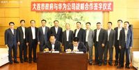【2015年6月16日,大连】华为公司与大连市政府在“第十三届中国国际软件和信息服务交易会”上签署云计算战略合作协议,双方就共建软件云服务平台和大连城市智慧化建设等领域达成战略共识,为大连当地和全国的软件企业提供一站式的软件云服务,同时助力大连智慧城市产业发展,以大连为核心辐射整个东北亚地区,为各类企业客户提供方便、快捷、灵活的云计算服务。大连市市长肖盛峰,大连市副市长刘岩,华为公
