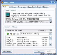 之前的Rivetuner 2.0 Final版本最高只能支持到GeForce 8800系列显卡,对于新发布的8600GTS/GT和8500GT无能为力,而且在Vista系统下面大多数功能都无法使用。 现在Rivatuner版本终于升级到了2.01,能够识别新显卡,在Vista系统下面的兼容性提高,并且能够支持150.XX以上的新驱动。 能支持8600GTS和158.19新驱动了