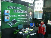 【泡泡网显卡频道】虽然目前整合型主板的性价比越来越高。但是究其性能来说,最高的整合主板性能还是不敌绝大多数的独立显卡。就按目前市售最高的整合主板690G来说,其性能也比不上市售最低的7100GS产品。由于NV 7100GS是目前市售显卡中支持HDTV最低的一款芯片,各显卡厂家最近都在搞一些针对7100GS显卡的一些活动;这不,今天小编就看见鼎好门口就搞起了艾尔莎7100GS的宣传活动。