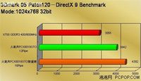 ATI在放出大量X800GTO芯片的同时,也放出了为数不少的X700芯片,但是在显存配置上有所差别,X800GTO清一色配备128MB/256bit DDR显存,X700配备双128 GDDR3显存,默认频率一般定在400/900MHz左右,作为支持DX9.0b的产品,他们的性能差别如何呢? 3Dmark05 3Dmark03 很明显的,X800GTO性能并没有因为使用DDR显存而