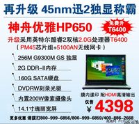 吕林梅 · 2009-01-06 17:40 - 迅2独显HP650升T6400 神舟优雅本热卖