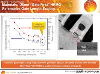 泡泡网主板频道12月1日 Globalfoundries副总裁Nick Kepler日前在IEEE纳米技术委员会上就Globalfoundries在28nm Gate-first HKMG制程工艺及EUV光刻技术方面的进展和未来计划做了演示说明。Kepler表示,Globalfoundries的gate-first工艺能够提供足够的晶体管门限电压调整空间,其可调范围超过了300mV,完全可